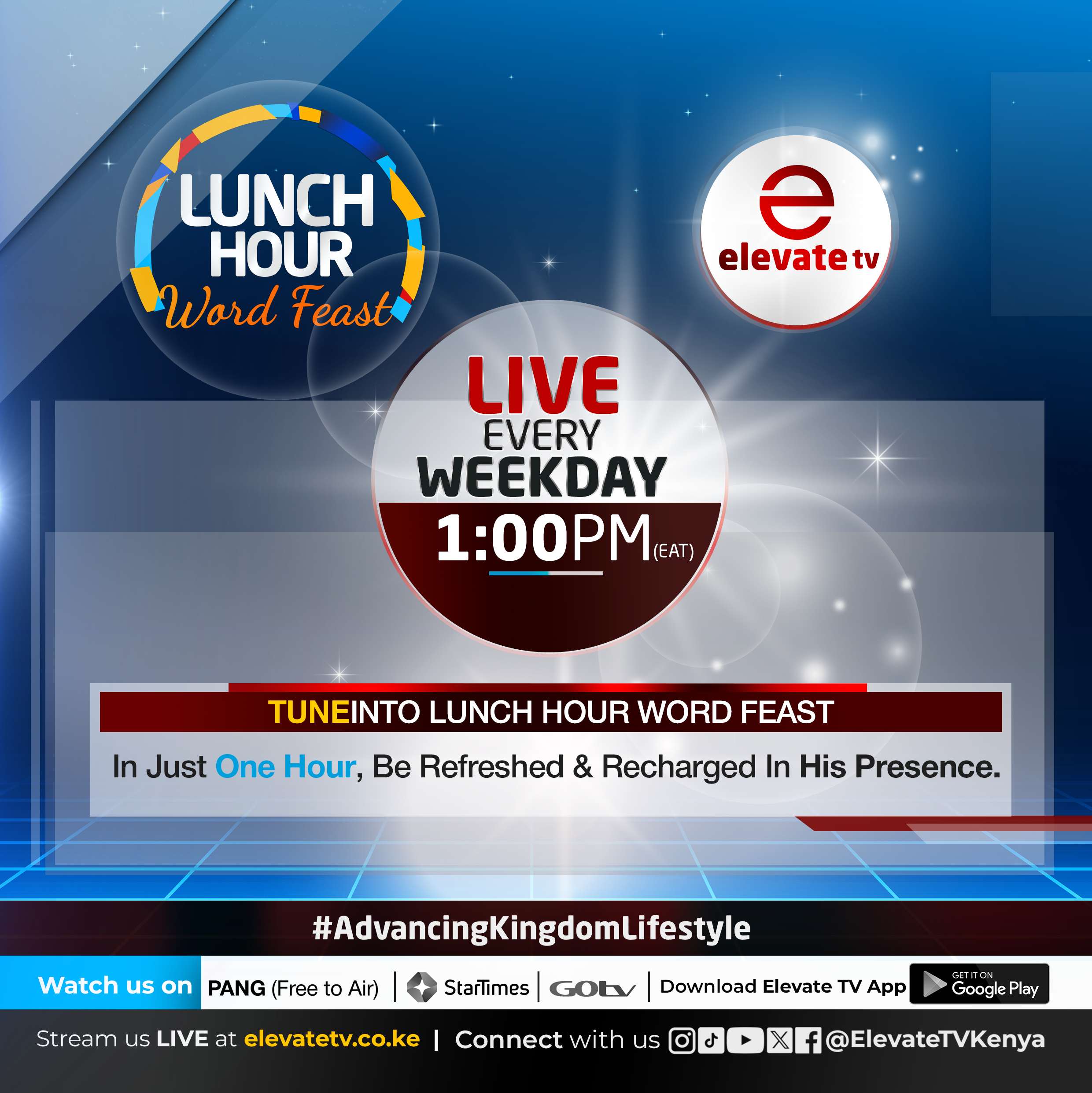 Get Elevate TV app today from the Huawei App Gallery or Google Play Store, or visit www.elevatetv.co.ke/live/ to start your journey with Elevate TV.